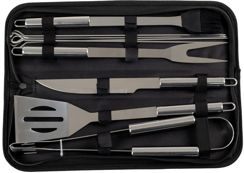 До набору для барбекю входить усе, що потрібно для аматорського та професійного використання. Прилади можна використовувати не тільки для барбекю, але й для копчення, випічки та загалом для роботи на кухні. Все виготовлене з високоякісної неіржавкої сталі, добре витримує високі температури та добре миється.