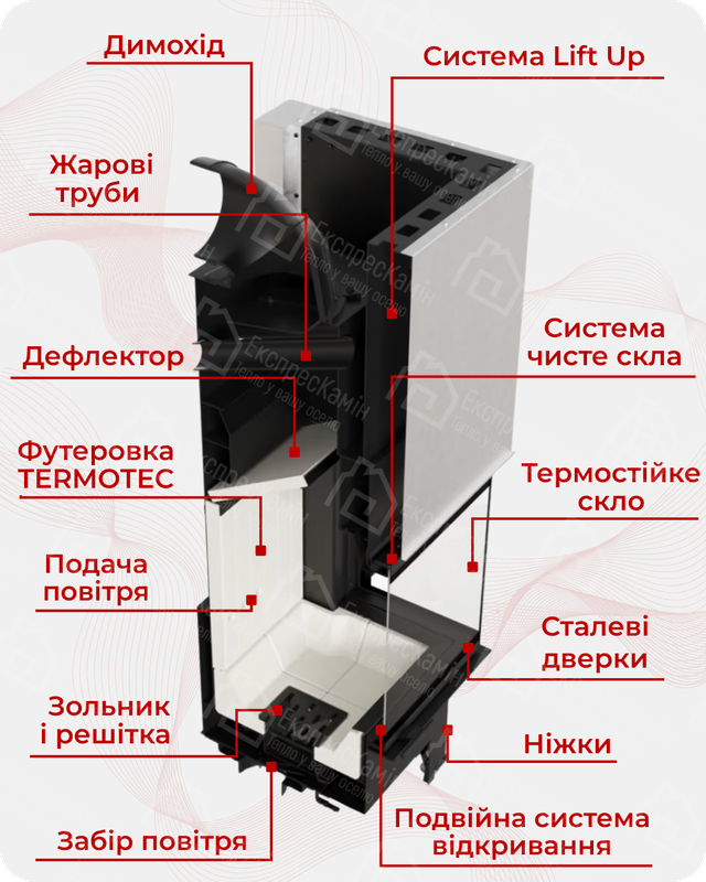 10. Футеровка TERMOTEC - матеріал, який забезпечує ефективне горіння та акумулює тепло.